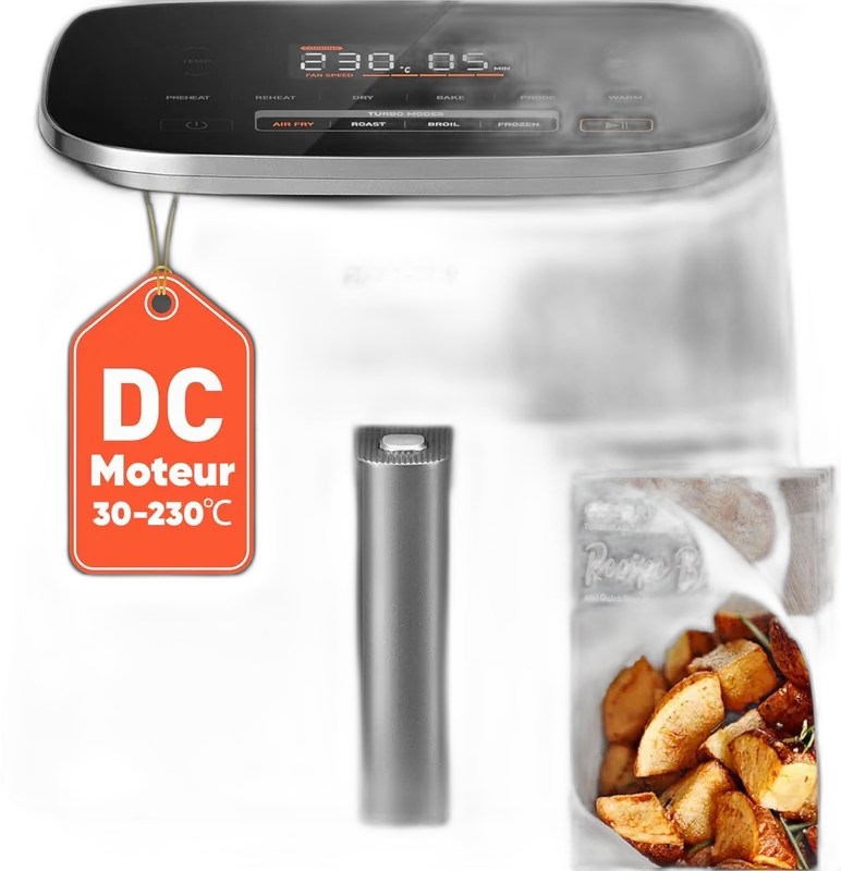 C'est l'investissement à privilégier si vous comptez utiliser votre friteuse à air 4 fois par semaine ou plus. Le surcoût par rapport à la Lite 4.7L se rentabilise rapidement en confort d'usage et en économies d'énergie. Pour aller plus loin, consultez nos accessoires recommandés : moules silicone adaptés, papier de cuisson perforé spécial friteuse à air, sondes de température pour les viandes.